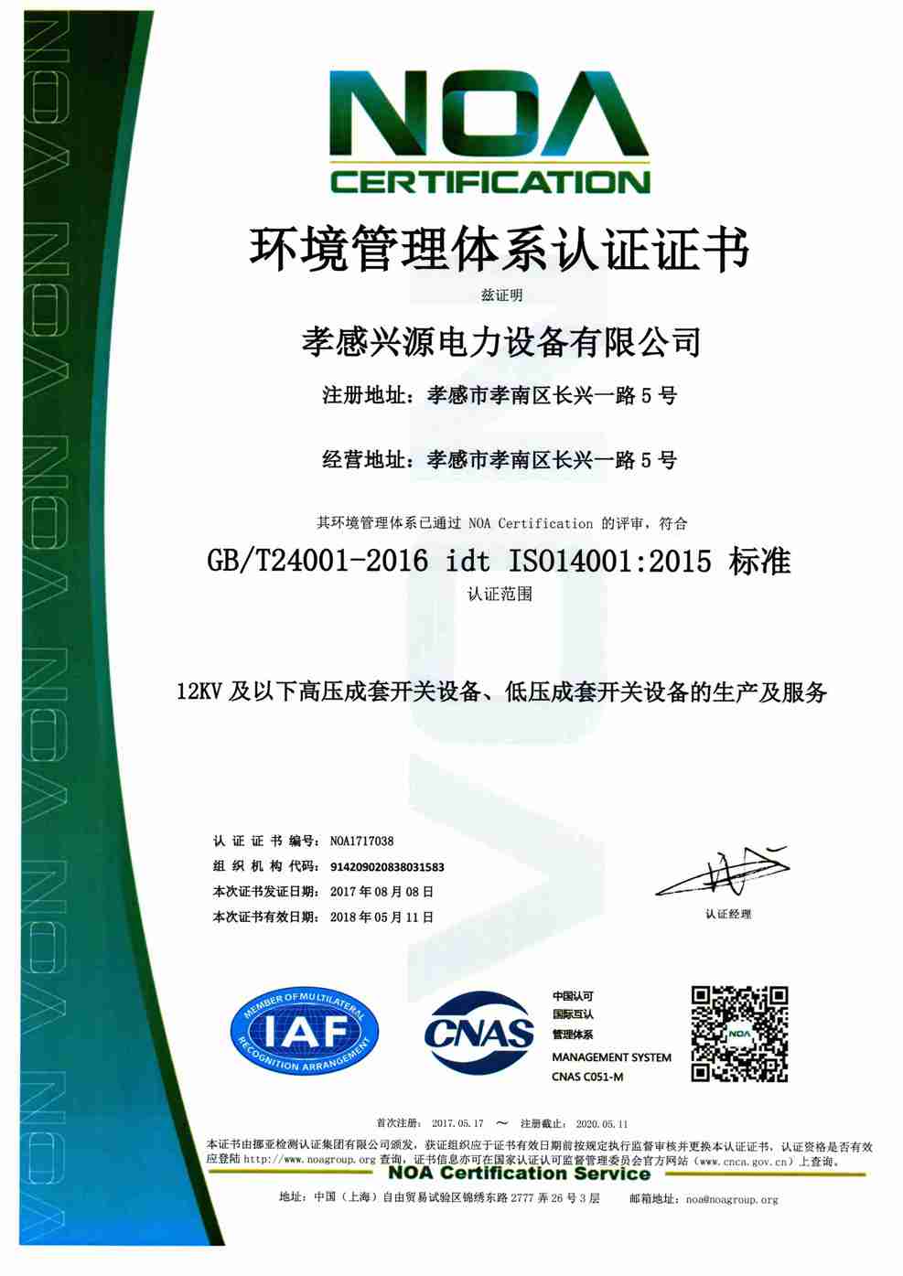 • 環境管理體系證書